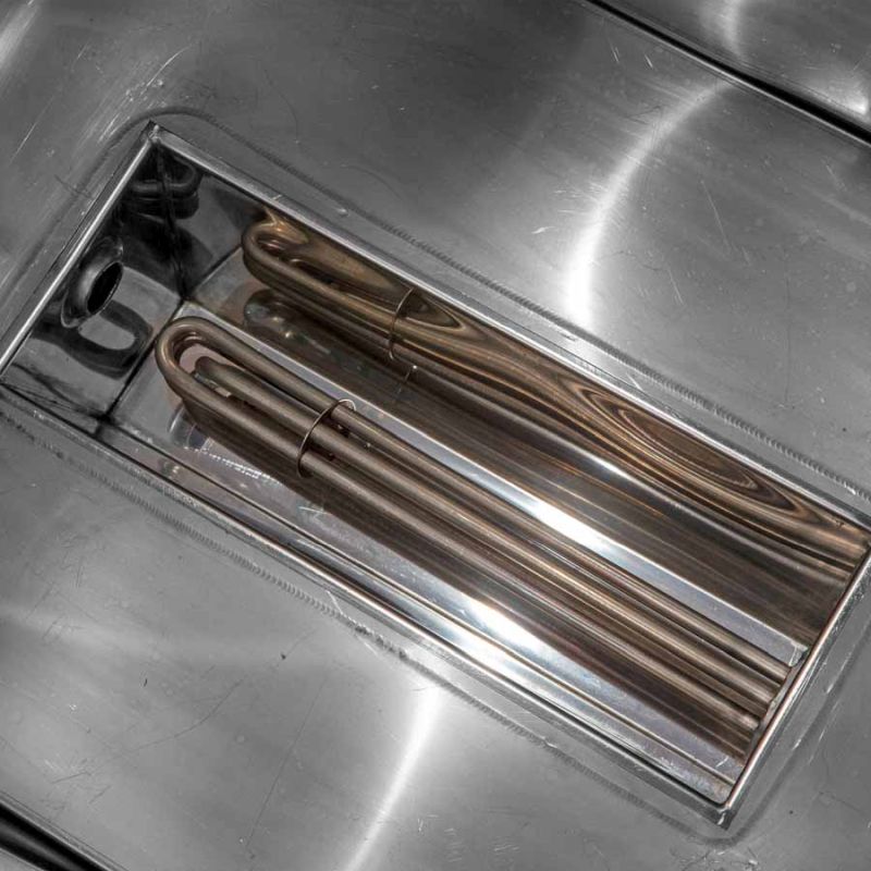 - Tauchrohrheizkörper 3 kW/230 V mit Temperaturregler 30–110 °C und Trockengehschutz.
