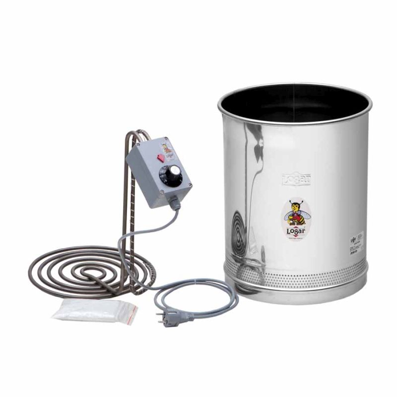 Der Honeytherm Schmelzgerät ist bestimmt zum Verflüssigen, Auftauen, Feinreinigen, Klären und Abfüllen von Honig. Mit dem Honeytherm kann Melezitose-Honig vollständig und ohne Wärmeschädigung verflüssigt werden, sodass der Honig seinen biologischen Wert nicht verliert. Das Gerät ist Teil des Logar-Sortiments für professionelle Honigverarbeitung und empfiehlt sich besonders in Kombination mit Logar Abfüllbehältern.