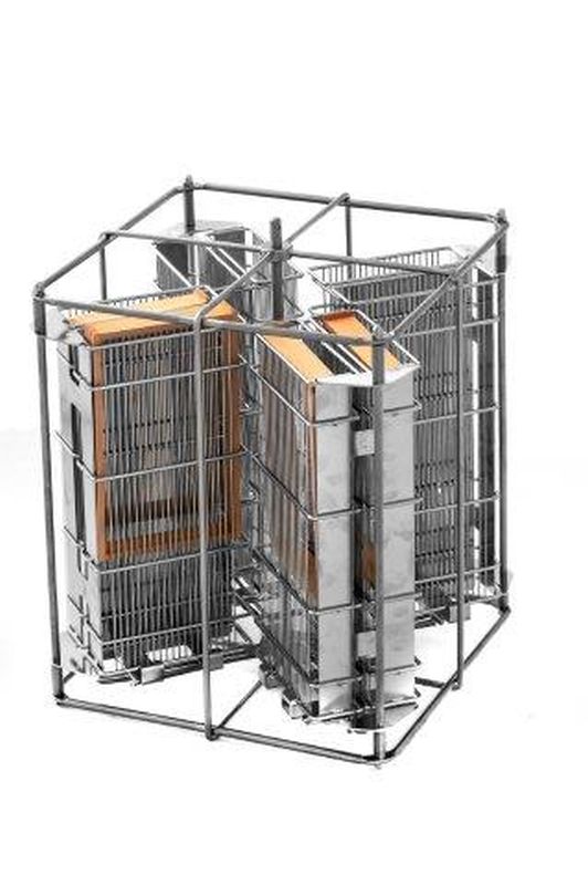 Ermöglicht das Schleudern der 8 Rähmchen bis zu einer Höhe von 17,7 cm und einer Oberleistenlänge von 48 cm. Speziell für CH‑Rähmchen angepasst.